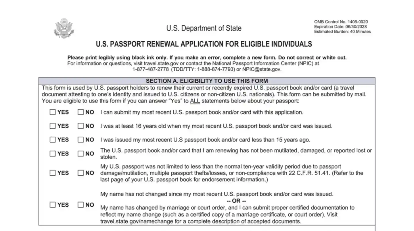 Form DS-82 is the official application used by U.S. citizens to renew their passports by mail. This form is intended for individuals who already possess a current or recently expired passport that meets specific criteria. To qualify, the passport must be undamaged, issued to the individual when they were at least 16 years old, issued within the last 15 years, and must be in the applicant's possession. If the passport was issued under a different name, applicants must include legal documentation, such as a marriage certificate, to prove the name change. By using Form DS-82, eligible individuals can renew their passports conveniently from home, eliminating the need to visit a passport acceptance facility. This process is particularly beneficial for routine renewals where there are no significant changes to the passport holder's identity.